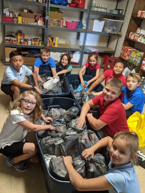 Feeding children one bag at a time. This program provides 90 bags per week to support and provide feed for students of St. Stephens Elementary.